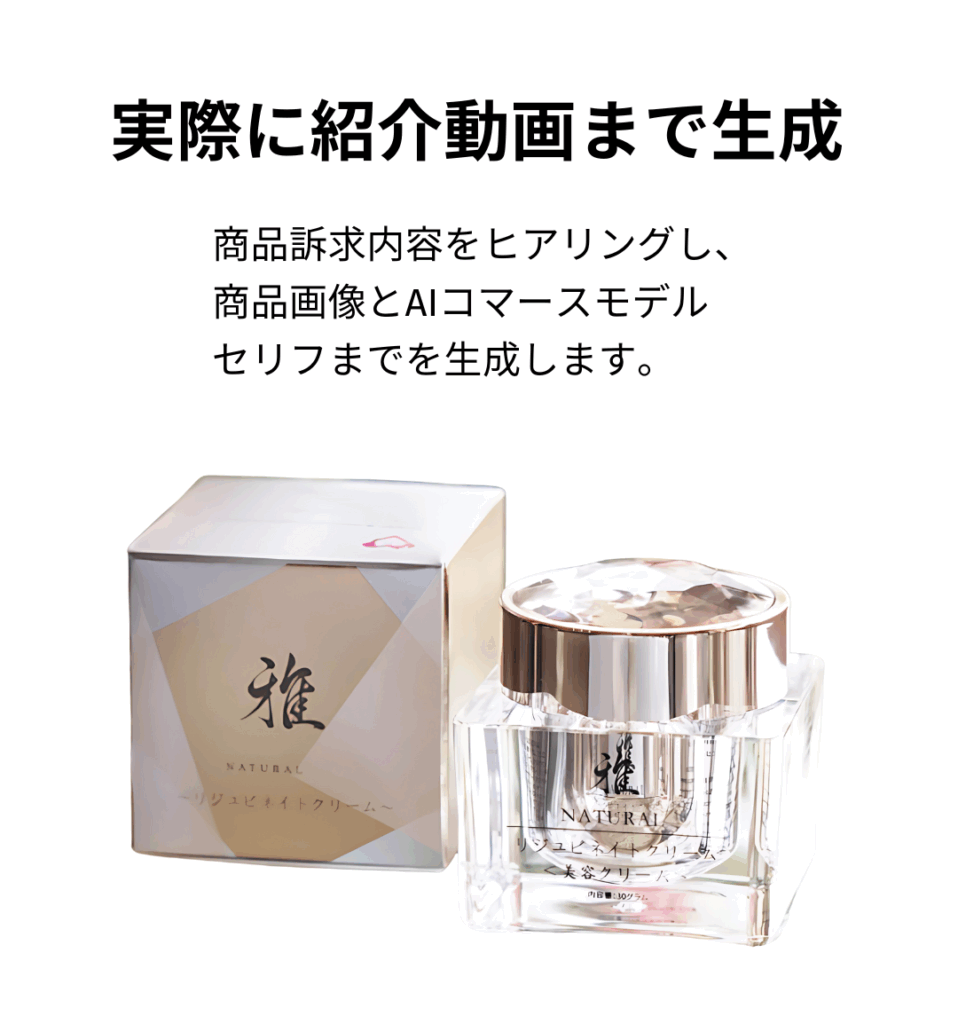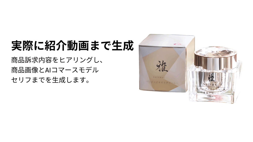 商品特徴や訴求内容をヒアリングさせていただき、AIモデルによる商品紹介動画を制作いたします。